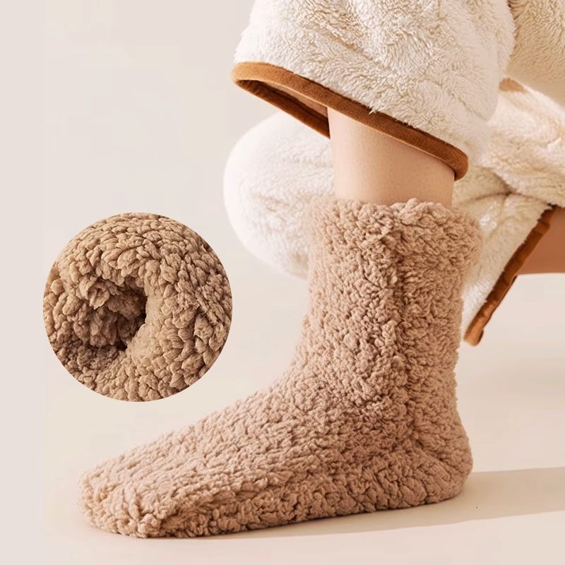 Dik pluche materiaal houdt de warmte vast voor langdurig comfort. Je voeten blijven lekker warm en beschermd, zelfs op de koudste ochtenden.