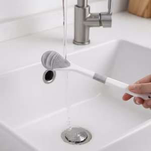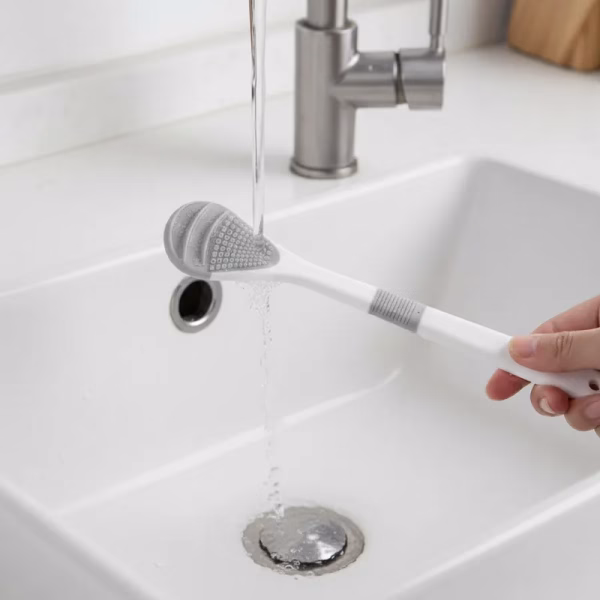 Ik bewaar hem aan de muur in de badkamer en hij is altijd droog en klaar. De grip is stevig zodat hij niet uit mijn handen glijdt.