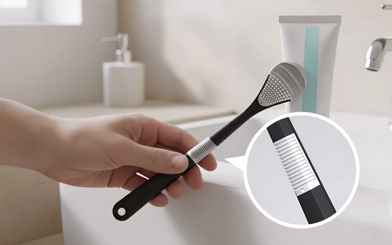 Deze tongreiniger elke ochtend gebruiken heeft echt een verschil gemaakt. Mijn adem is fris en mijn mond voelt de hele dag super schoon aan.