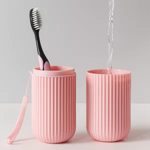 Hiermee blijft mijn tandenborstel schoon in mijn schooltas en ik gebruik het bekertje voor mondwater na de lunch. Nooit lekkage of breuk. Super handig!