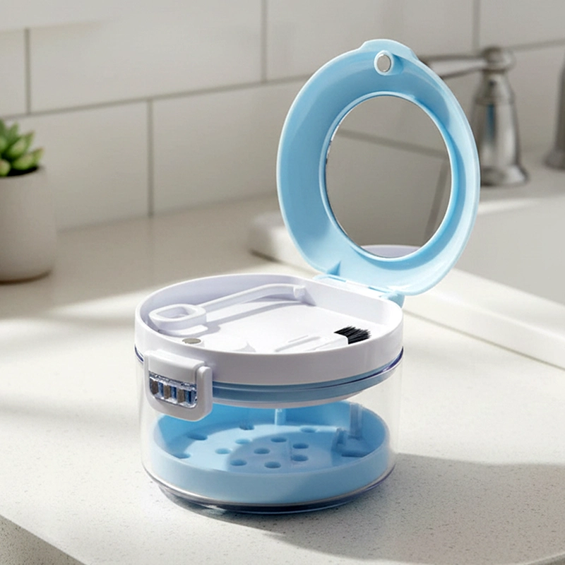 Ik had iets kleins nodig voor mijn gebitsprothese als we reizen. Dit doosje past in mijn handbagage, springt niet open en is makkelijk schoon te maken na gebruik in hotels.