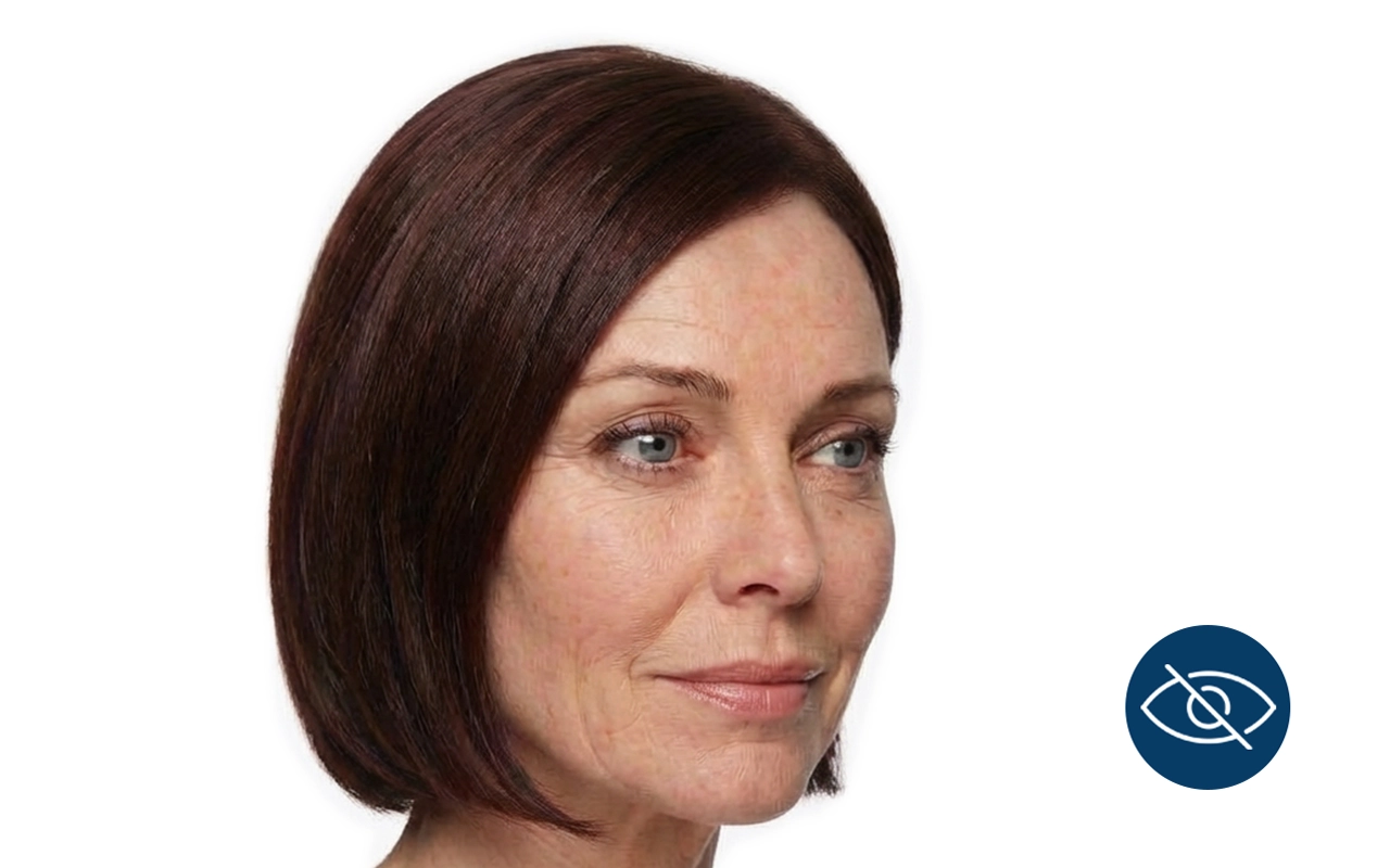 Geen lijnen meer onder mijn pruik, geweldig.