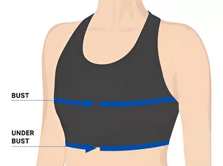 - 3. Om je onderborstomtrek te meten, wikkel je het meetlint rond je ribbenkast, direct en gelijkmatig onder je borst.