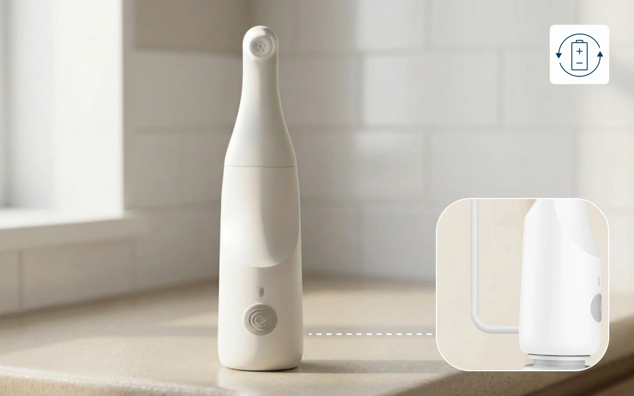 De Ortorex-bidet maakt persoonlijke verzorging gemakkelijk, waar je ook bent. Past op de meeste flessen voor direct gebruik en zorgt snel voor comfort. Het spatwaterdichte ontwerp houdt alles schoon en droog. Opladen is eenvoudig en de batterij gaat wekenlang mee zonder zorgen.