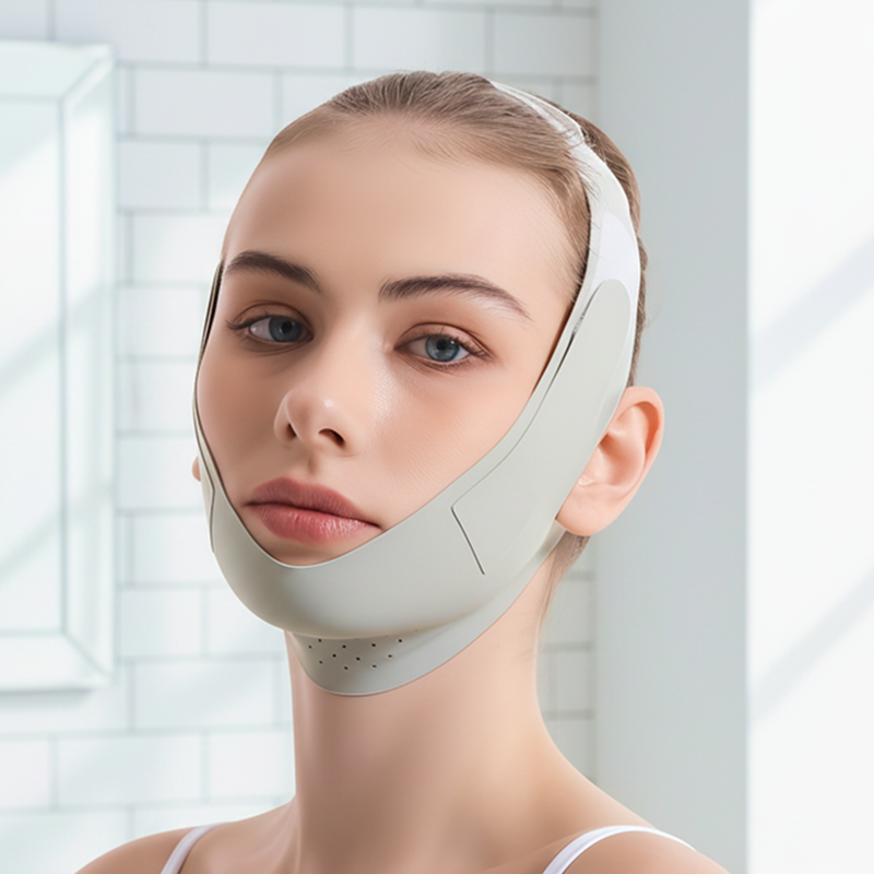 Deze kaakband dragen ’s nachts voelt zacht en licht aan. Ik word elke ochtend wakker en ben blij met het verschil dat ik in mijn gezicht zie.