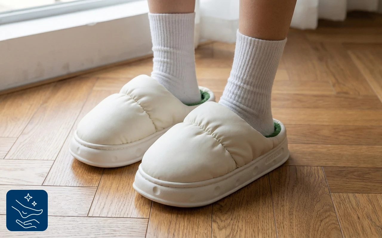 Deze zachte pantoffels zijn zo gezellig en houden mijn voeten super warm op koude ochtenden. Geen druk of benauwdheid, gewoon zachte comfort bij elke stap.