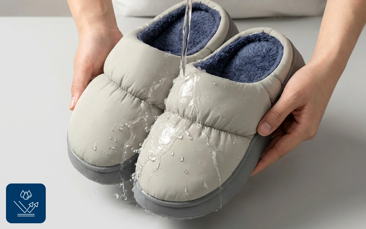 Mijn voeten blijven nu droog, zelfs als ik water mors in de keuken. De waterdichte zool is echt een pluspunt. Super comfortabele vulling binnenin!