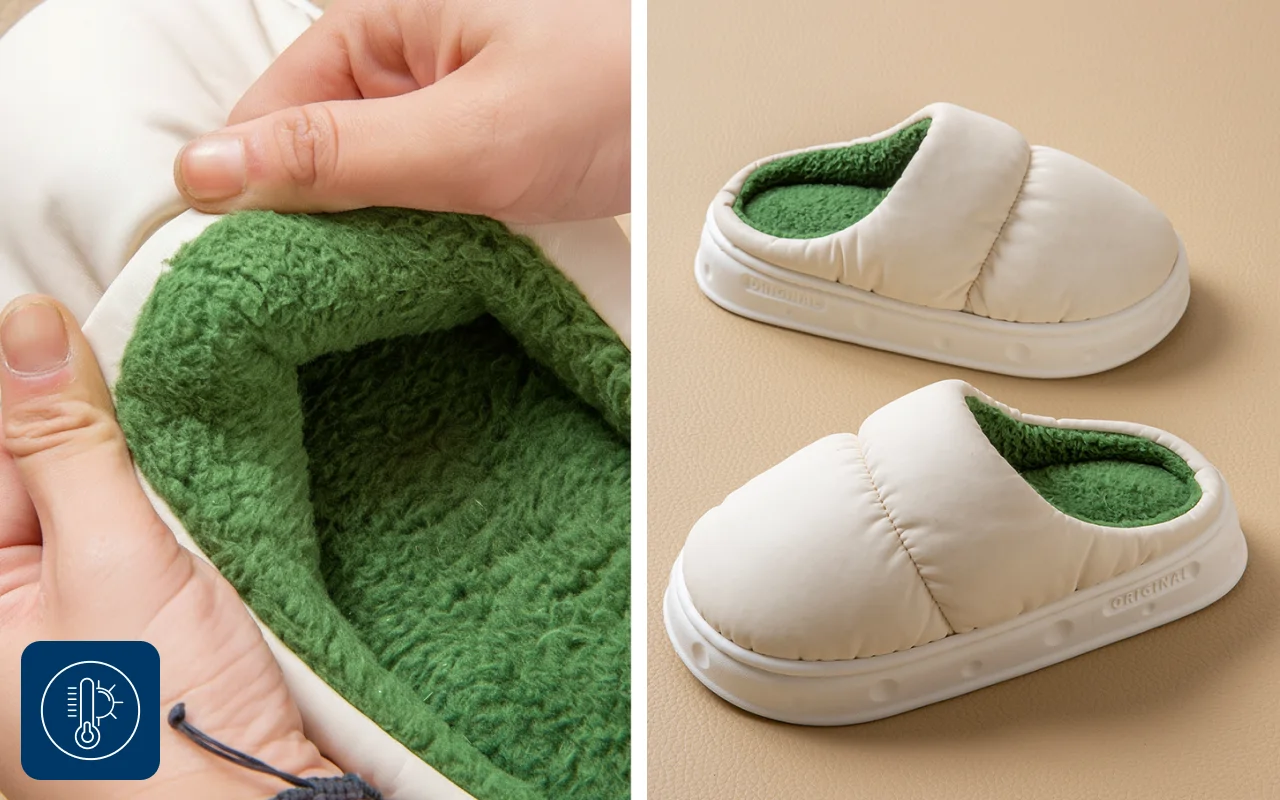Dik pluizig materiaal isoleert je tenen tegen koude vloeren binnenshuis. Elke nacht geniet je van warme tenen, zelfs bij vriesweer.
