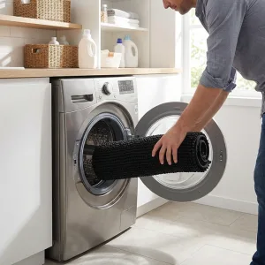 Sinds ik deze mat heb, blijft mijn gang schoon, zelfs als mijn kinderen met natte schoenen binnenkomen. Ik vind het fijn hoe makkelijk hij in de wasmachine kan!