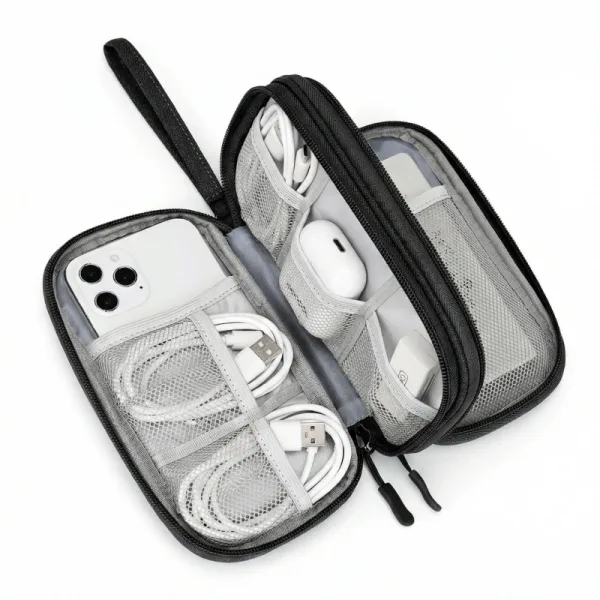 Ik gooide het tasje in mijn tas op een regenachtige dag en mijn telefoonoplader bleef droog. Nooit meer zoeken naar oordopjes of USB-sticks op de bodem van mijn tas!