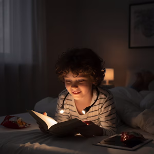 Deze neklamp maakt ’s nachts lezen zo gemakkelijk! Mijn handen zijn vrij en ik vind het leuk om de lichtkleur aan te passen aan mijn stemming.