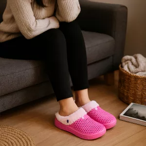 Zachte pluche voering omhult elke voet met rustgevende warmte. Nooit meer koude tenen als je door het huis loopt.