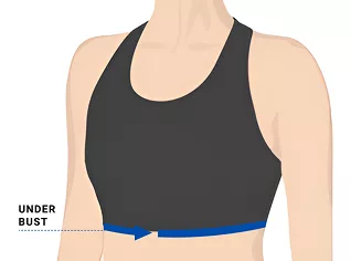 - 2. Om je onderborstmaat te vinden, wikkel je het meetlint recht en gelijkmatig rond je ribbenkast, direct onder je borst.