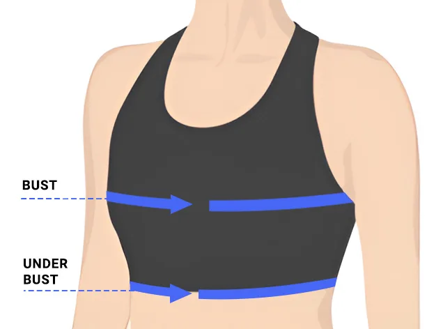 - 2. Om de onderborstomvang te meten, wikkel je het meetlint rond je ribbenkast, direct en gelijkmatig onder je borsten.