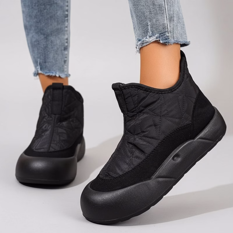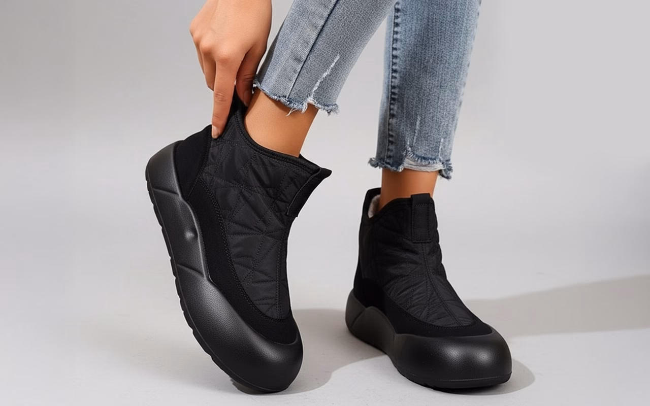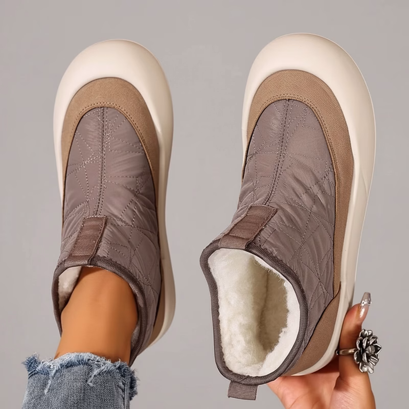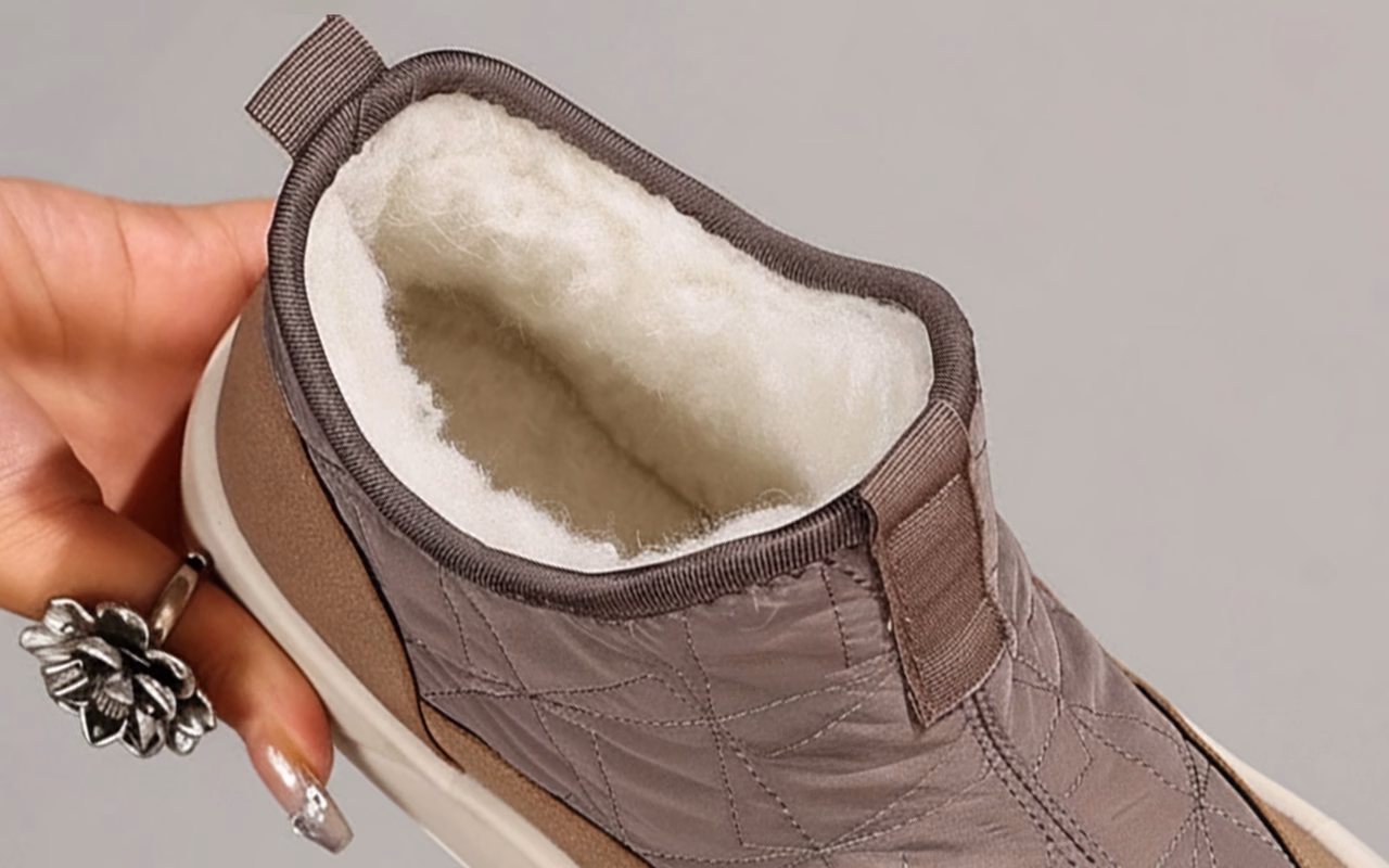 Pluche voering omringt de tenen en beschermt tegen gure wind. Dikke isolatie houdt je warm tijdens kille ochtenden.
