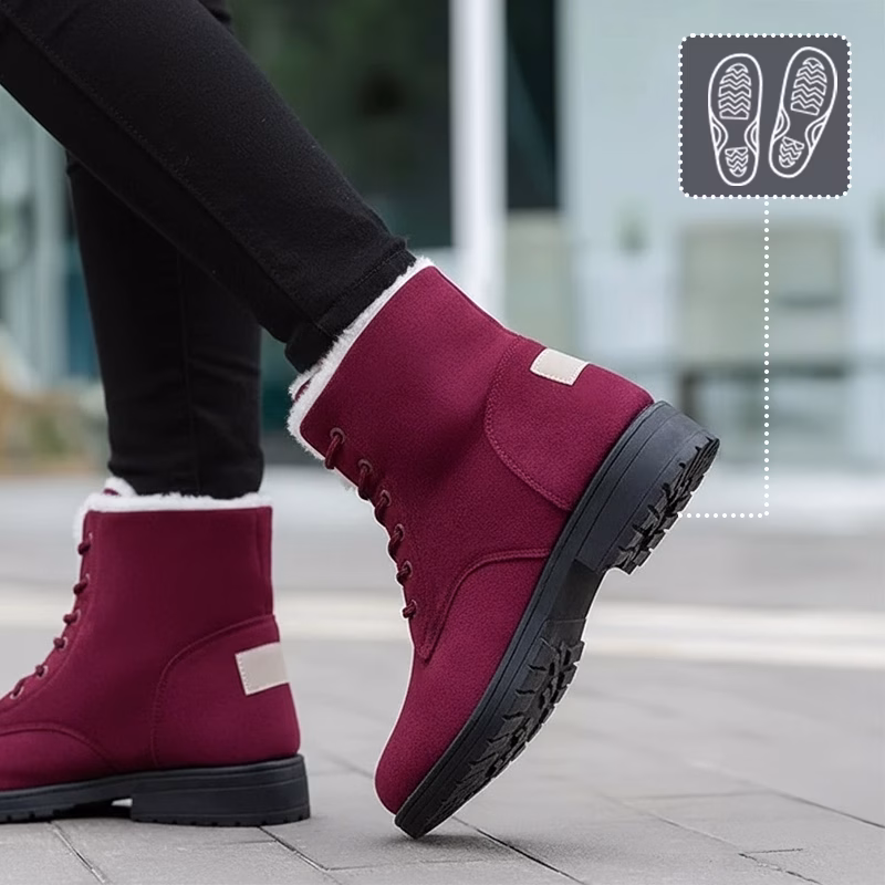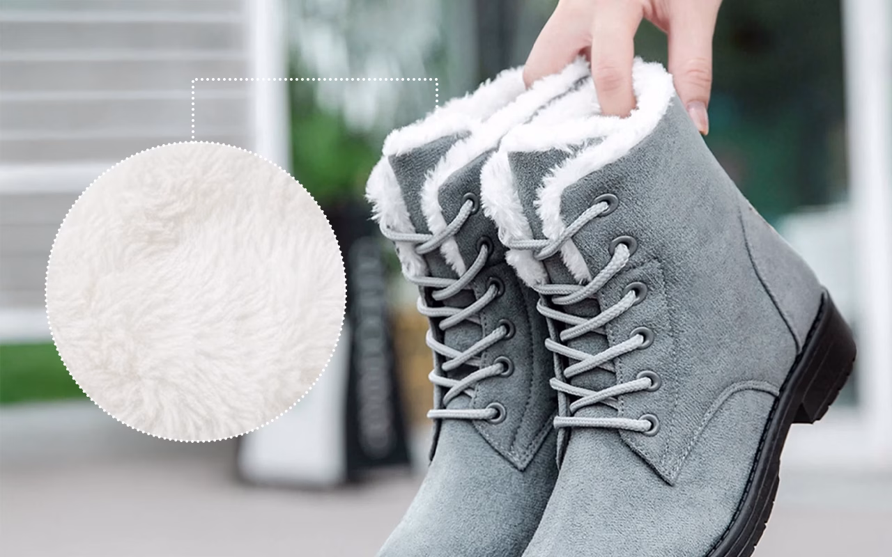 Dikke pluche voering houdt de temperatuur perfect tijdens koude wandelingen. Je tenen zijn volledig beschermd tegen de ijzige lucht buiten.