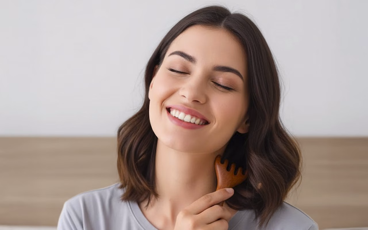 Zachte, afgeronde tanden masseren de huid en verlichten spanning. Voel je verfrist terwijl de spanning bij elke streek wegsmelt.