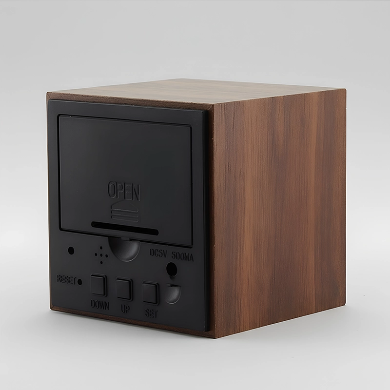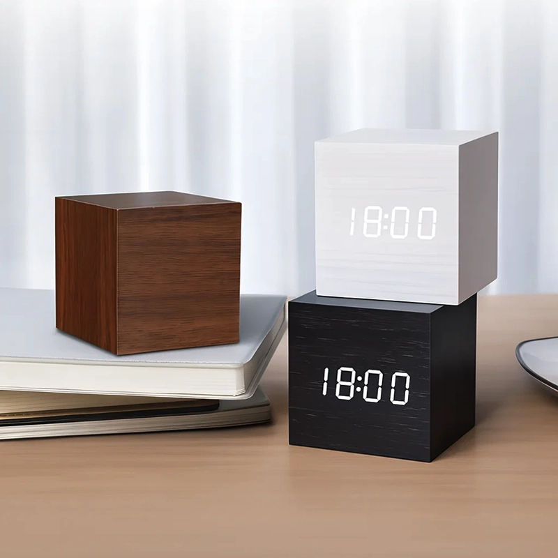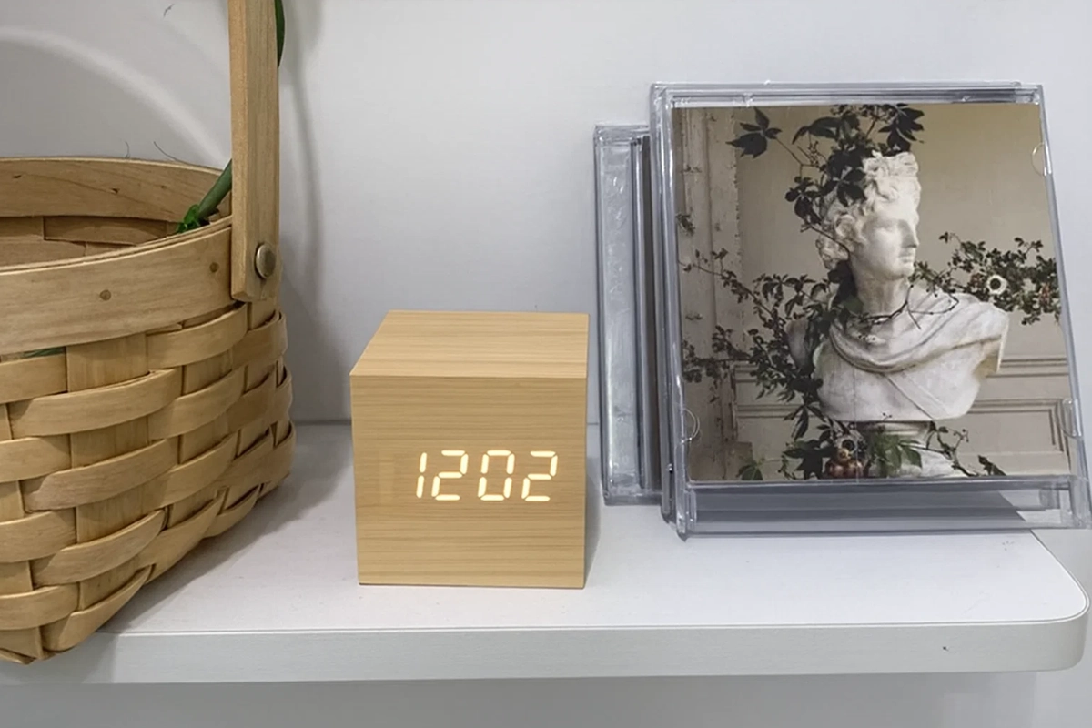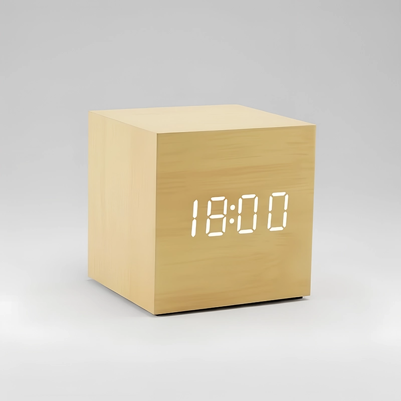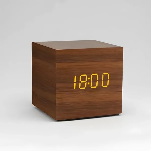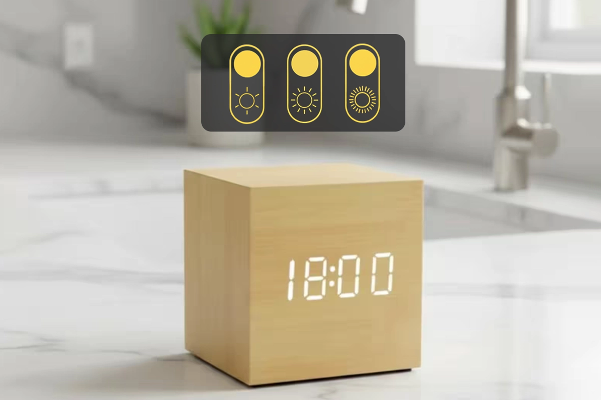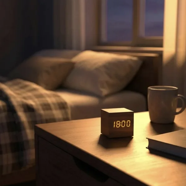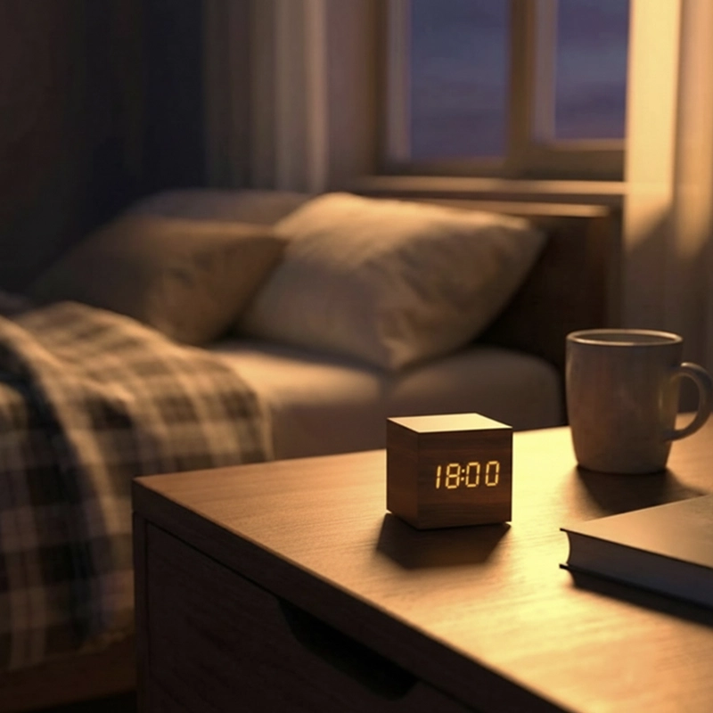 Ik vind het zachte display erg prettig—ik kan de tijd lezen, zelfs in het donker, zonder pijn aan mijn ogen. De houten uitstraling maakt mijn kamer gezellig.