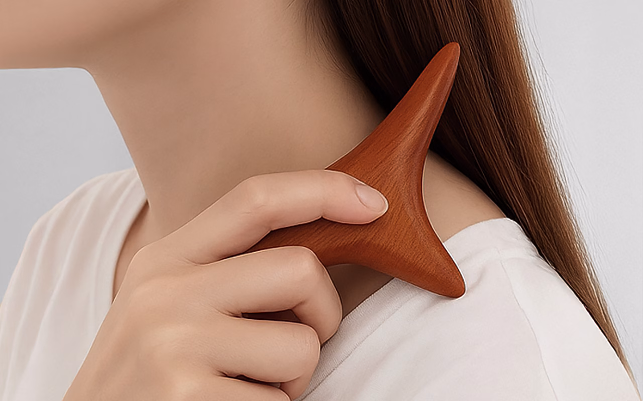 De houten gua sha helpt me tot rust te komen voor het slapengaan. Mijn huid is altijd zacht daarna en het irriteert nooit.