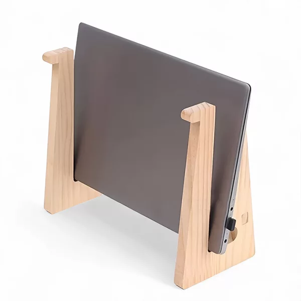 De Orotrex houten standaard past naadloos bij modern of klassiek interieur. Het tilt je laptop omhoog voor beter zicht en minder nekbelasting.