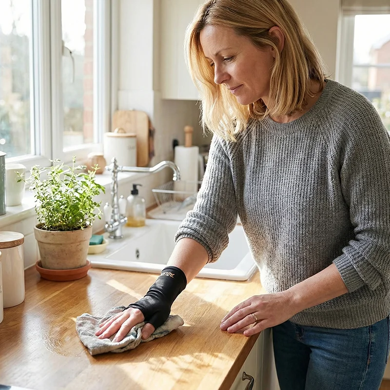 De Ortorex gel polssteunmouw helpt vermoeide handen snel te verzachten. Zachte hydrogel omsluit je pols en verlicht spanning door dagelijks gebruik. De zachte stof voelt glad en nooit kriebelig, zelfs na uren dragen. Het flexibele ontwerp laat je vrij bewegen bij elke taak.