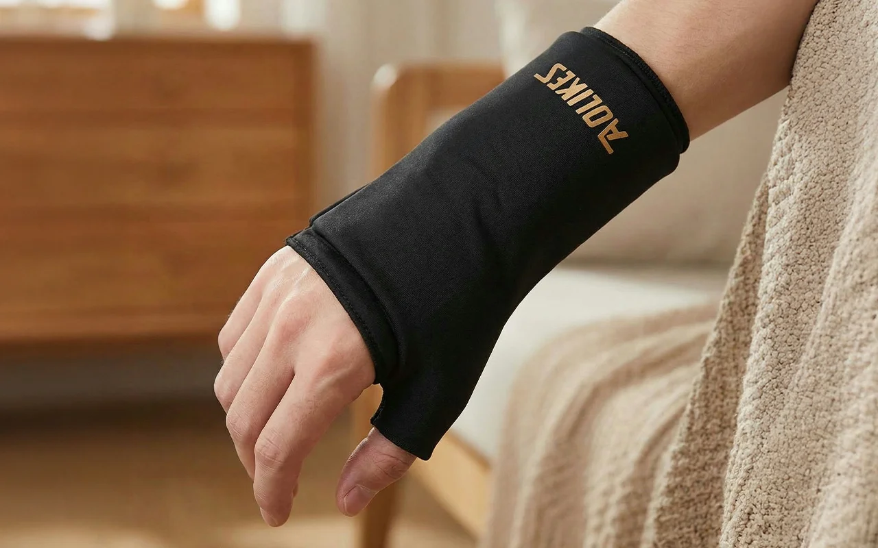 De warmte van de gelsleeve verlicht mijn nachtelijke polspijn.